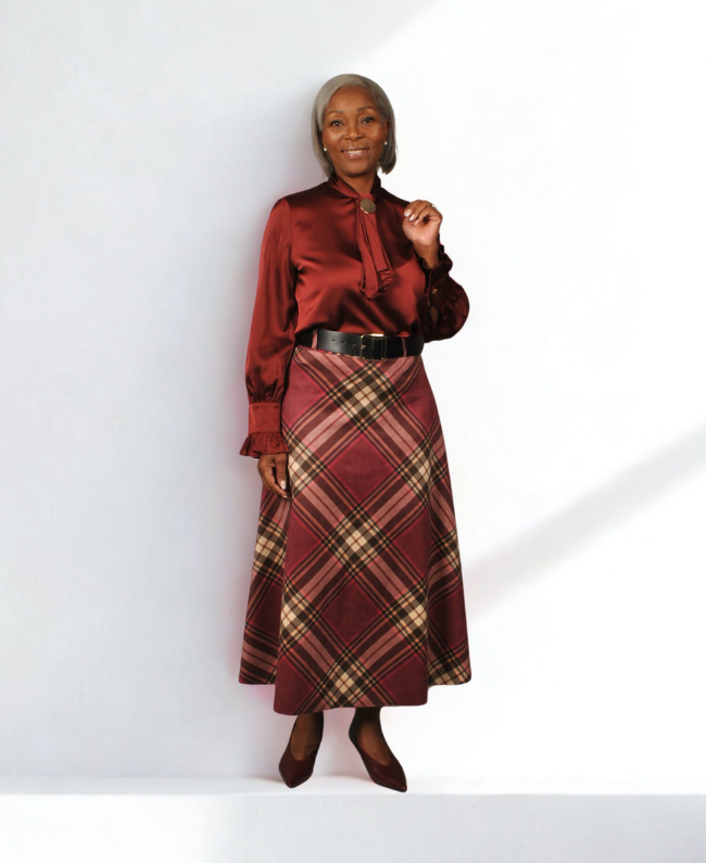 Lange Velours Rok met Ruitpatroon – Elegant & Chic